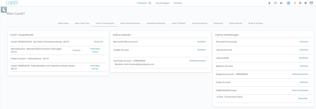 Der CARE01 Mandant ist für die GIN-Anbindung freigeschalten.