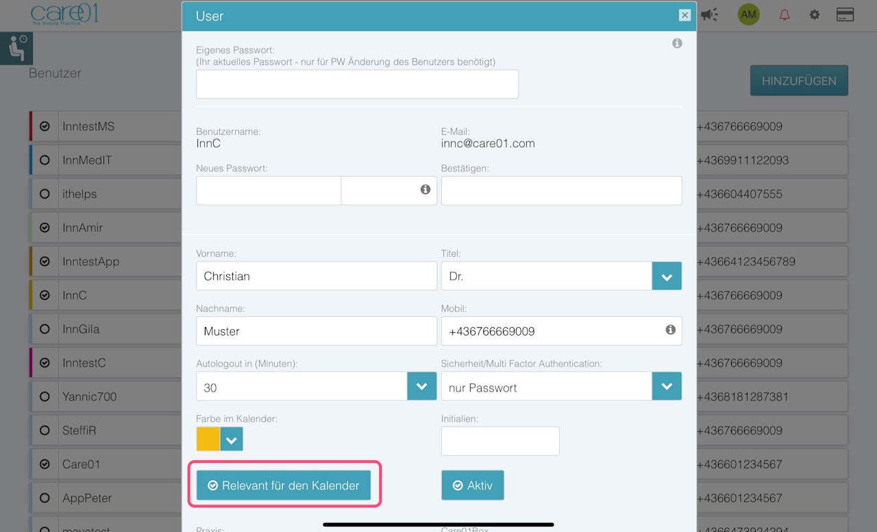 In CARE01 sind das Benutzer mit der Eigenschaft “Relevant für Kalender”.